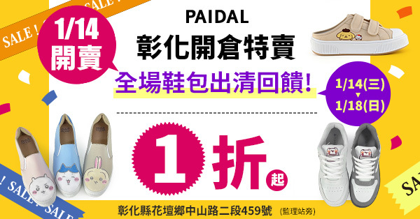 【PAIDAL彰化開倉特賣】2026年度大事件 全場1折起(限時5天! 1/14-1/18)